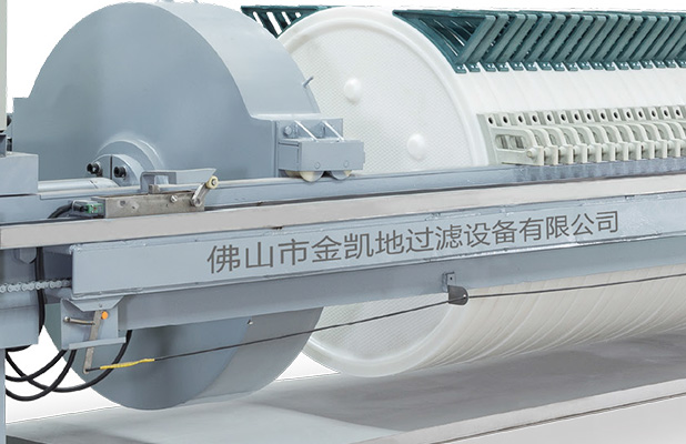 在污泥泵進(jìn)泥壓力達(dá)到設(shè)定壓力值后,污泥泵自動停機(jī),進(jìn)泥閥自動關(guān)閉,壓榨機(jī)的液壓系統(tǒng)自動啟動,對進(jìn)入濾腔的污泥進(jìn)行二次壓榨,壓力高達(dá)65——110kg/cm2,濾室自動調(diào)節(jié)壓縮,使濾餅在高壓力壓榨下將濾餅中的大部水?dāng)D出