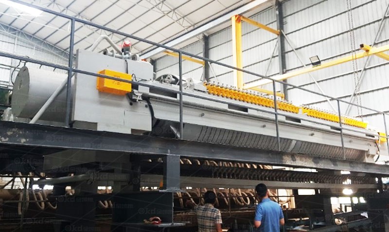 濾板開啟:油缸松開,利用自動(dòng)拉板小車將濾板拉開。