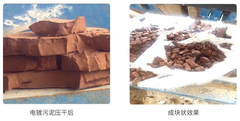 案例分享:某電鍍廠含水率80%污泥,濾餅所受壓力4.0MPa,在原有水處理工藝基礎(chǔ)上未添加任何藥劑的情況下,經(jīng)過壓榨壓榨處理電鍍污泥含水率為45%,污泥粘結(jié)度小易碎裂無需破碎,且污泥脫水時(shí)出水速率較好。